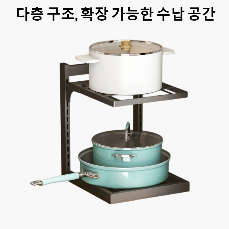 가정용 바닥 수납장, 조절 가능한 레이어드 선반으로 주방 공간 효율 극대화, 냄비 및 다양한 주방용품 깔끔하게 정리, 싱크대 찬장에 최적화된 실용적 디자인