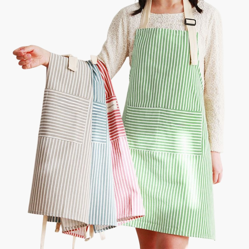 코튼과 리넨 스트라이프 앞치마