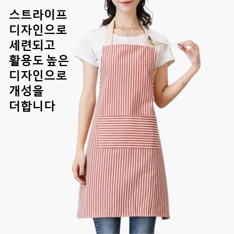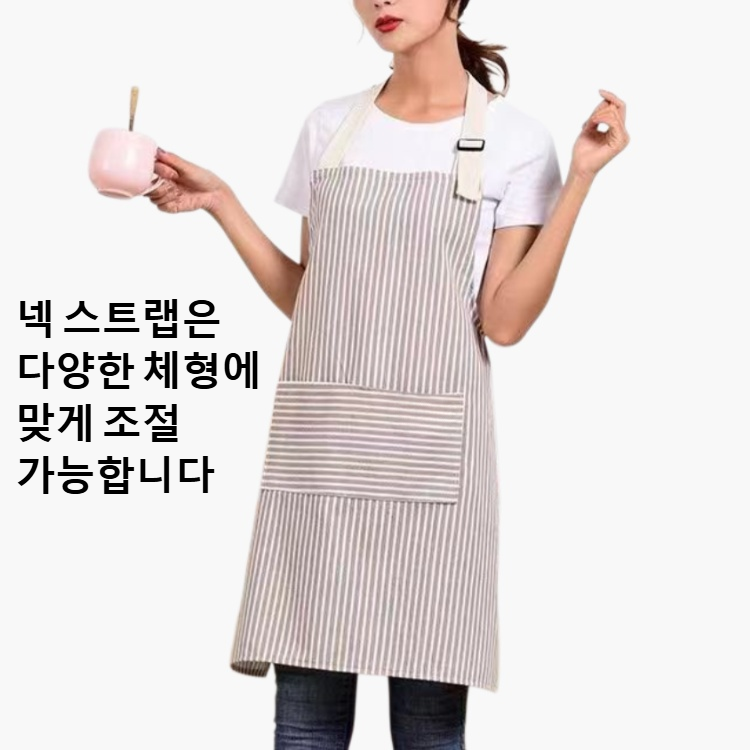 면과 린넨 혼방, 조절 가능한 넥 디자인, 통기성 우수, 스트라이프 패턴, 작업 및 집안일에 적합, 오염 방지 앞치마 스커트